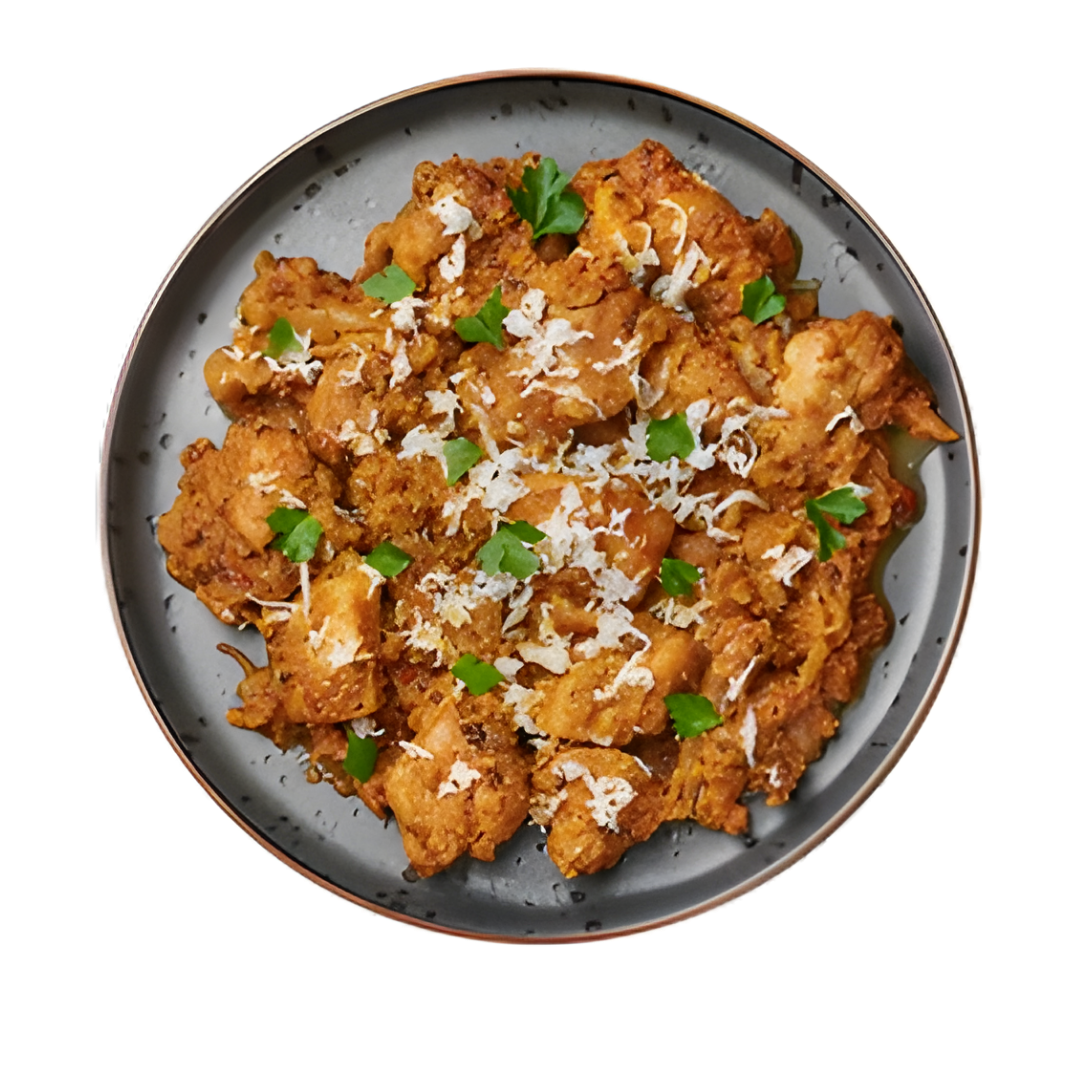 Boneless skinless chicken cooked in creamy onion sauce with cashews and almonds.